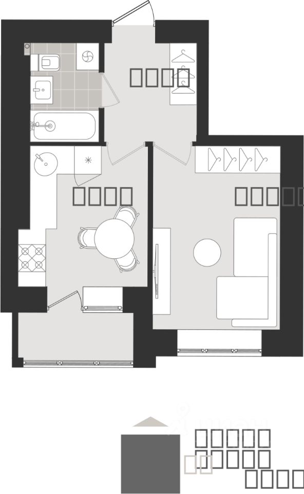 Продаётся 1-комнатная квартира в строящемся доме (Дом 5), срок сдачи: III-кв. 2027, общей площадью 29.33 кв.м., на 2 этаже. Новый жилой комплекс "Этюд" от Группы компаний "Модуль-Стройград" расположен в г. Калининград на ул. Поленова.