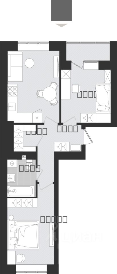 Продаётся 2-комнатная квартира в строящемся доме (Дом 6), срок сдачи: III-кв. 2027, общей площадью 53.87 кв.м., на 1 этаже. Новый жилой комплекс "Этюд" от Группы компаний "Модуль-Стройград" расположен в г. Калининград на ул. Поленова.