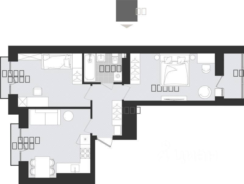 Продаётся 2-комнатная квартира в строящемся доме (Дом 6), срок сдачи: III-кв. 2027, общей площадью 57.41 кв.м., на 9 этаже. Новый жилой комплекс "Этюд" от Группы компаний "Модуль-Стройград" расположен в г. Калининград на ул. Поленова.