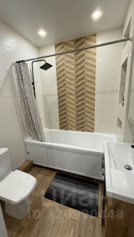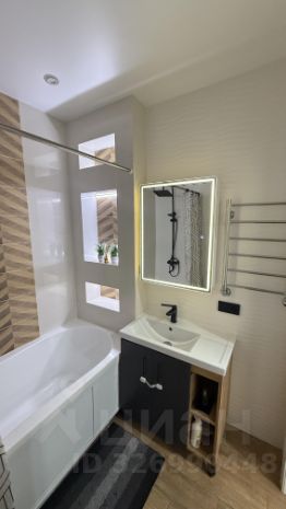 В ванной комнате установлена современная сантехника. Встроенные шкафы обеспечивают достаточно места для хранения вещей.