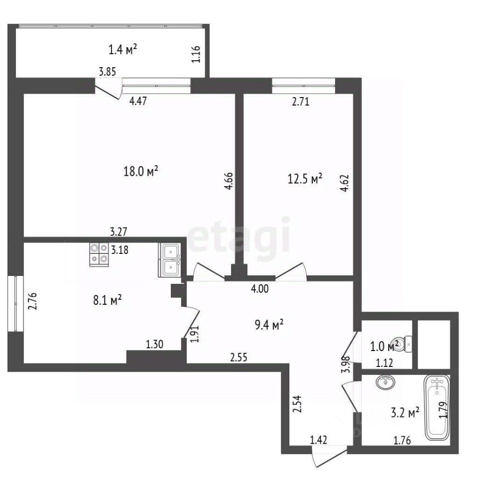 Общая площадь 54 м2
