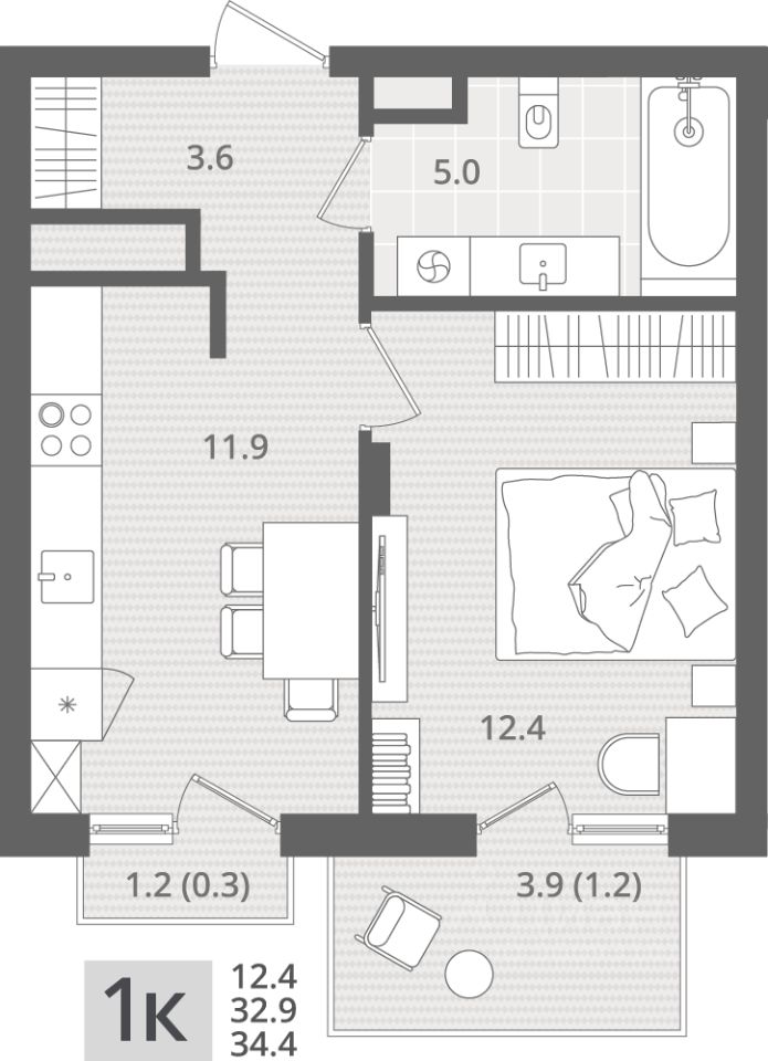 Продаётся 1-комнатная квартира в строящемся доме (Дом 1.2), срок сдачи: IV-кв. 2026, общей площадью 34.4 кв.м., на 7 этаже. Новый жилой комплекс "МОре" от Строительной компании "Меркурий" расположен по адресу: Калининградская область, г. Пионерский, пос. Рыбное.