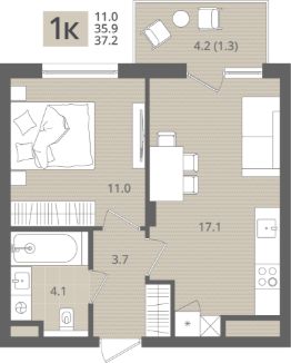 Общая площадь37,2 м²
