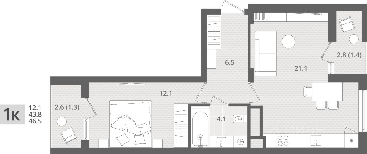Продаётся 1-комнатная квартира в строящемся доме (Дом 1.2), срок сдачи: IV-кв. 2026, общей площадью 46.5 кв.м., на 4 этаже. Новый жилой комплекс "МОре" от Строительной компании "Меркурий" расположен по адресу: Калининградская область, г. Пионерский, пос. Рыбное.