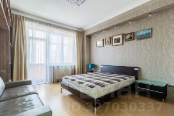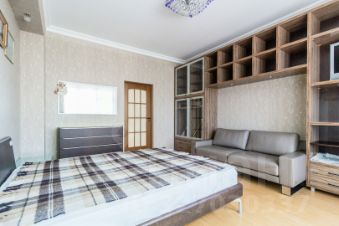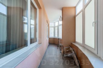 По периметру спальни - гостиной идет большая остекленная лоджия.