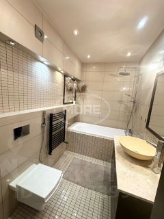 Квартира полностью готова для проживания. Выполнен современный дизайнерский ремонт в спокойных тонах. Качественные материалы, техника, мебель выполнена на заказ, установлены теплые полы.