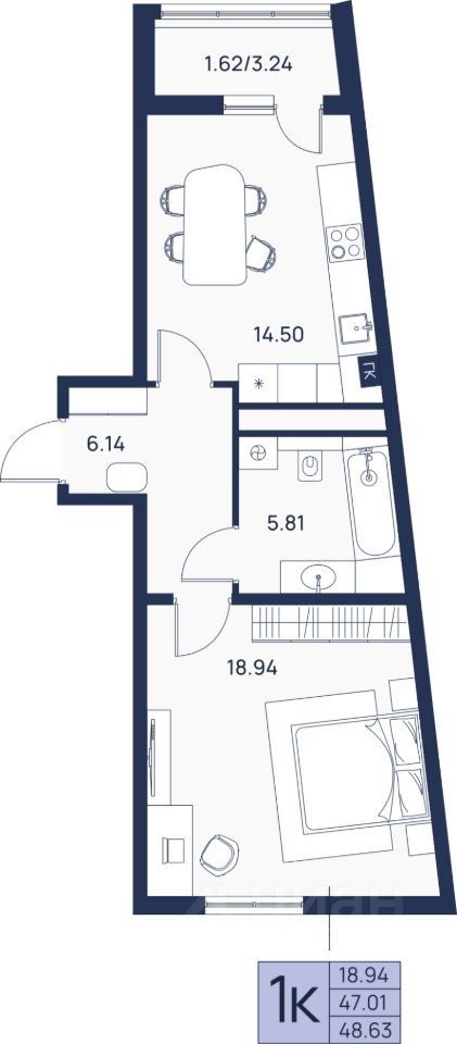 Продаётся 1-комнатная квартира в строящемся доме (Дом 1), срок сдачи: IV-кв. 2026, общей площадью 48.63 кв.м., на 2 этаже. Новый жилой комплекс "Источник" от застройщика "КПД-Калининград" расположен по адресу: Калининградская обл., пос. Родники, ул. Калининградская.