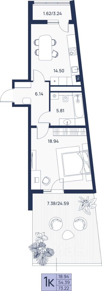 Продаётся 1-комнатная квартира в строящемся доме (Дом 1), срок сдачи: IV-кв. 2026, общей площадью 73.22 кв.м., на 1 этаже. Новый жилой комплекс "Источник" от застройщика "КПД-Калининград" расположен по адресу: Калининградская обл., пос. Родники, ул. Калининградская.