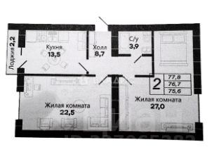 - Общая площадь: 76, 5 кв. м