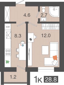 Продаётся 1-комнатная квартира в сданном доме (Лазурная, 29к1 (Дом 1 4 очередь)), срок сдачи: III-кв. 2025, общей площадью 28.8 кв.м., на 3 этаже.