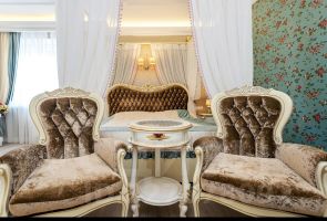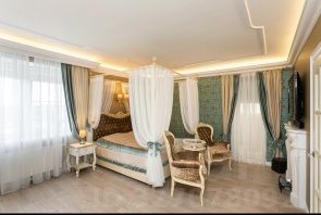 спальня с Итальянской мебелью площадью 22 кв.м., с примыкающим санузлом 14 кв.м. и просторной гардеробной 18,5 кв.м. станет вашим личным уголком уюта и релаксации.