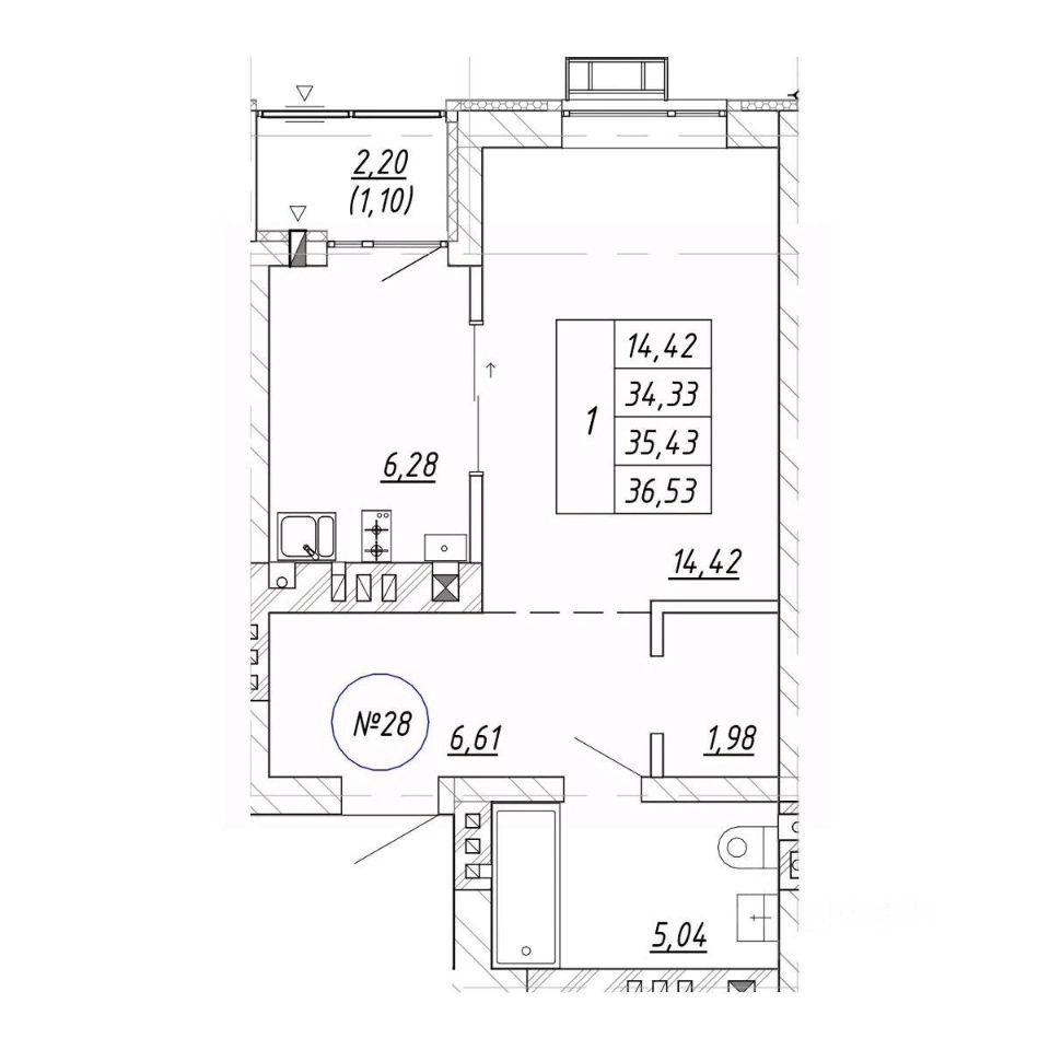 Общая площадь36,53 м²