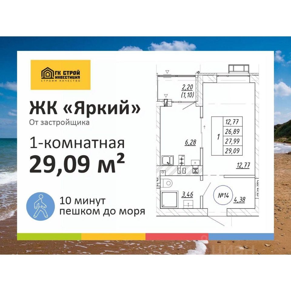 КВАРТИРА У МОРЯ В ЗЕЛЕНОГРАДСКЕ 10 минут пешком до пляжа! Семейная ипотека 5% Рассрочка от застройщика 0% Подарок: умный дом от Сбера Продается квартира комфорт-класса в новом малоэтажном ЖК "Яркий" у Балтийского моря, г. Зеленоградск. Прямая продажа от застройщика. Тихая локация в развивающемся районе - вдали от городского шума и рядом с побережьем. 1-комн. квартира 2 этаж О ЖИЛОМ КОМПЛЕКСЕ 4-этажные дома с лифтами Удобные планировки Отделка "серый ключ" - коммуникации спрятаны, стены оштукатурены, полы залиты Металлические двери с тепло- и шумоизоляцией Автономное газовое отопление Детские площадки, зоны отдыха, озеленение Доступная среда Парковочные места для жителей и гостей комплекса Закрытая территория со шлагбаумами ЛОКАЦИЯ ЖК расположен в посёлке Малиновка - это: тишина чистый, комфортный пляж 10 минут до Куршской косы на автомобиле 8 минут до центра Зеленоградска 35 минут до Калининграда магазины, кафе, транспорт - рядом О ЗАСТРОЙЩИКЕ "СТРОЙИНВЕСТИЦИЯ" Строим с 2014 года в Калининграде и области. Сопровождаем клиента на всех этапах - от подбора квартиры до регистрации сделки. Работаем только с эскроу-счетами - ваши средства защищены! Возможна дистанционная покупка и онлайн-сделка. ЖК "Яркий" - комфортная жизнь у моря и выгодная инвестиция. Подходит для проживания, отдыха и сдачи в аренду. Позвоните или напишите нам - расскажем о планировках, ипотеке и актуальных предложениях, запишем на просмотр или онлайн-показ.