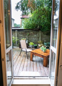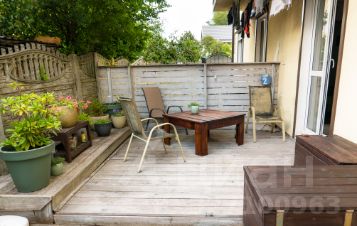 За квартирой закреплён собственный дворик площадью 41 кв м. Дворик огорожен забором, выход на него только из квартиры. Во дворике сделан подиум из террасой доски, прилагается стильная уличная мебель из натуральной лиственницы, есть зона для барбекю (можно в любой момент пожарить шашлык и пр., в т.ч. на новый год). Дворик-терраса позволяет 24/7 365 дней в году: ставить на улицу коляску с ребёнком, загорать, заниматься спортом, хранить крупногабаритные предметы, устраивать трапезу на свежем воздухе. Фактически, это превращает квартиру в таунхаус.