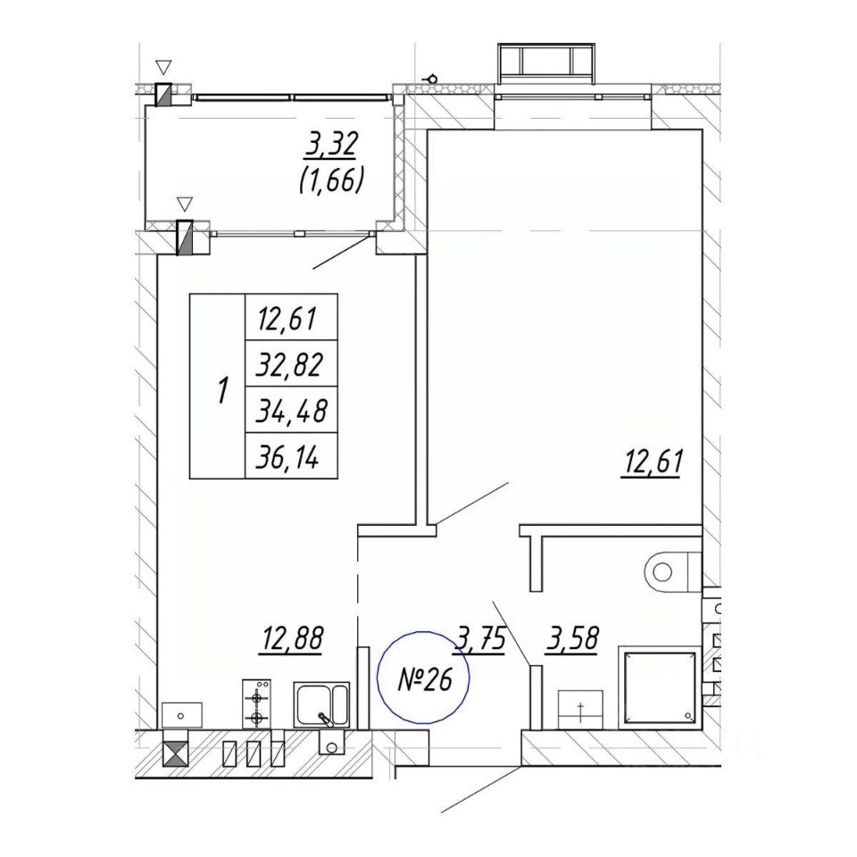 Общая площадь36,14 м²
