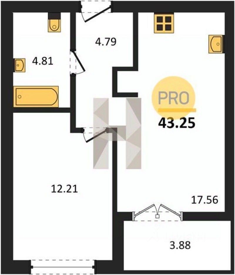 Квартира: 1 к 41,31 кв.м., 2 этаж в комплексе Включи, 5 очередь, корп.10, сдача: 3кв. , этажей: 7, адрес Гурьевск г., Героя России Катериничева ул., , Застройщик: ССК. Номер в базе: J31260L26856