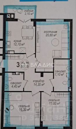 Общая площадь квартиры составляет 90.5 кв. м. Отдельное внимание стоит уделить грамотной планировке и наличию изолированных комнат.