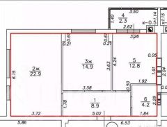 Комнаты: 14.9 м и 22.9 м (из одной большой комнаты сделали 2, каждая с окном на западную сторону)