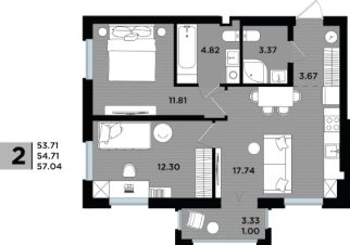 В проекте представлены 1, 2, 3 -комнатные и двухуровневые квартиры различной площади.