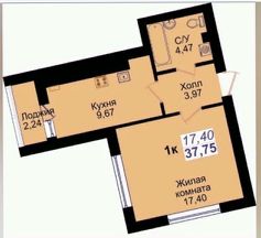 - Общая площадь 37,75 м2