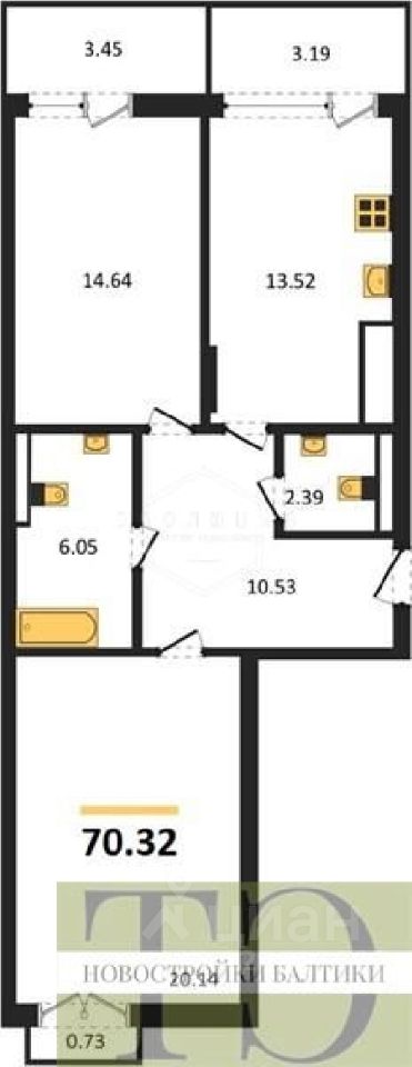 Квартира: 2 к 71,10 кв.м., 2 этаж в комплексе Аэро, 1 очередь, корп.C, сдача: 3кв. , этажей: 7, адрес Малое Исаково п., Первая ул., д. 1 корп 3, Застройщик: ГК Расцвет.