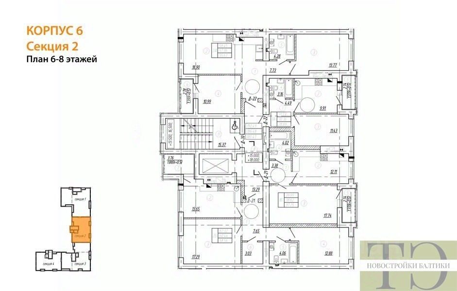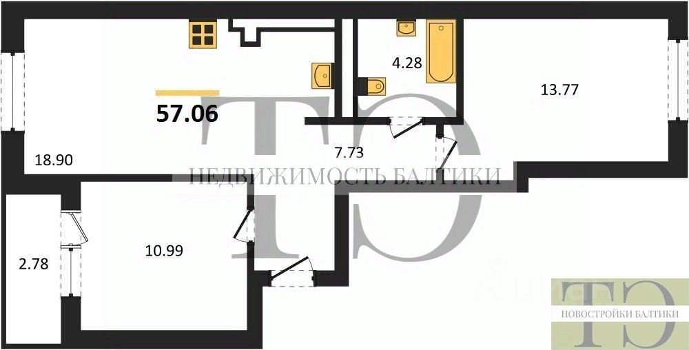 Квартира: 2 к 57,06 кв.м., 8 этаж в комплексе Подсолнухи, 4 очередь, корп.6, сдача: 4кв. , этажей: 9, адрес Калининград г., Понартская ул., д. 12, Застройщик: Модуль-Стройград.