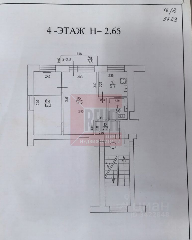 Компактная 2-комнатная квартира (общая 43 м²) на 4 этаже кирпичного дома,с кладовой можно увеличить в третью комнату за счет окна.