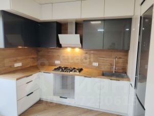 - Пpоcторная кухня-гостиная с мебелью: большой угловой диван, встроенный кухонный гарнитур с бытовой техникой (холодильник, стиральная машина, посудомойка - всё остаётся);