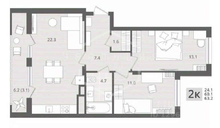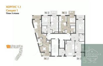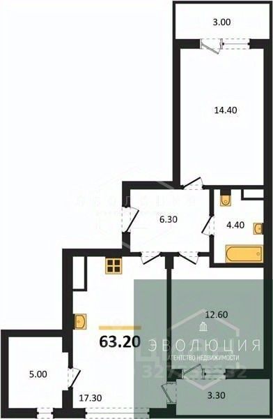 Квартира: 2 к 63,20 кв.м., 3 этаж в комплексе МОре, 1 очередь, корп.1.1, сдача: 4кв. , этажей: 7, адрес Пионерский г., Рабочая ул., , Застройщик: СК Меркурий.