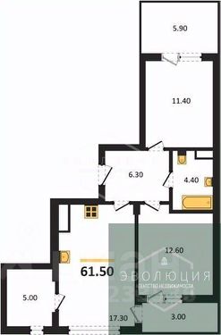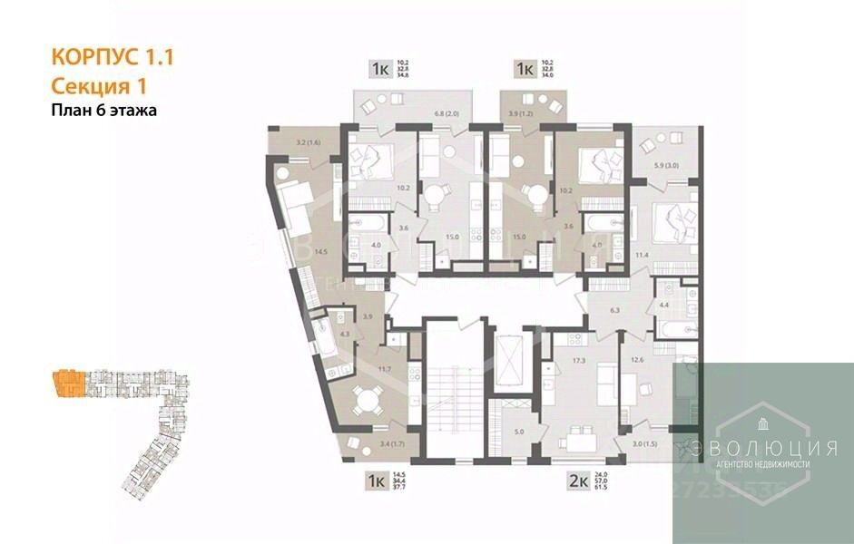 Квартира: 2 к 61,50 кв.м., 6 этаж в комплексе МОре, 1 очередь, корп.1.1, сдача: 4кв. , этажей: 7, адрес Пионерский г., Рабочая ул., , Застройщик: СК Меркурий.