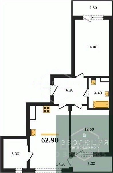 62,9 м²