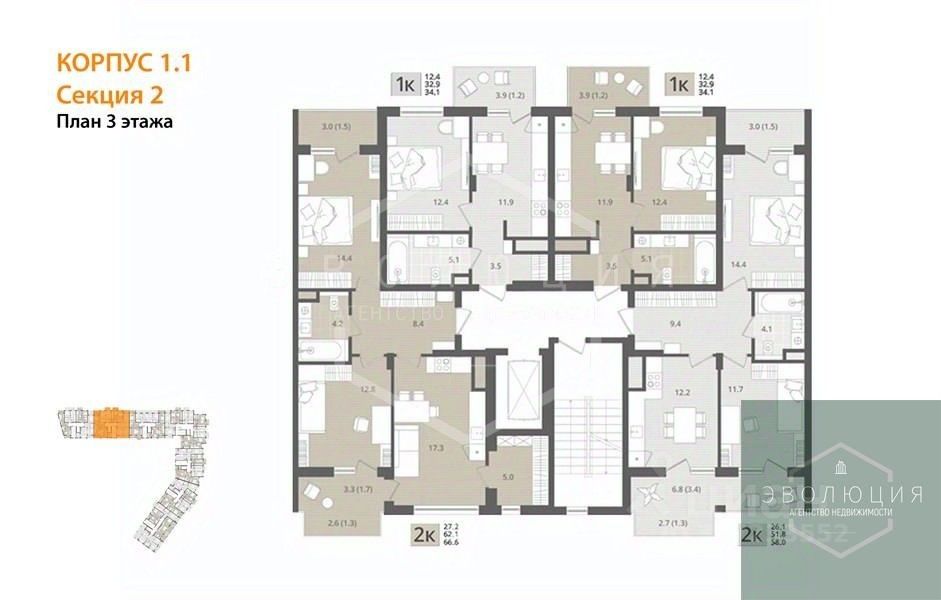 Квартира: 2 к 58,00 кв.м., 3 этаж в комплексе МОре, 1 очередь, корп.1.1, сдача: 4кв. , этажей: 7, адрес Пионерский г., Рабочая ул., , Застройщик: СК Меркурий.