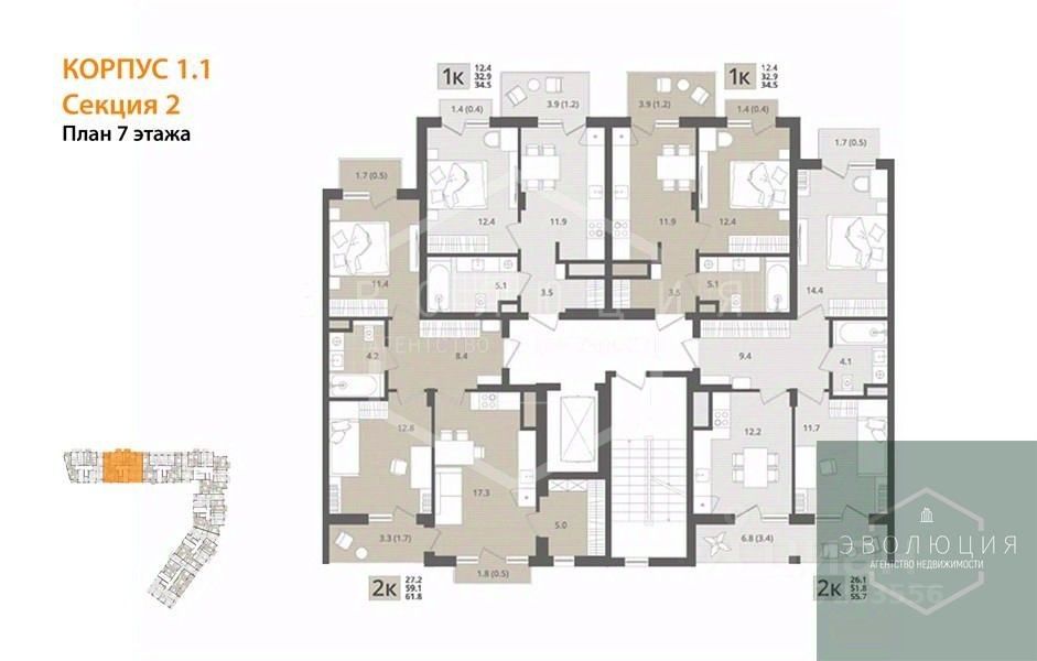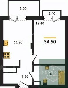 Квартира: 1 к 34,50 кв.м., 7 этаж в комплексе МОре, 1 очередь, корп.1.1, сдача: 4кв. , этажей: 7, адрес Пионерский г., Рабочая ул., , Застройщик: СК Меркурий.