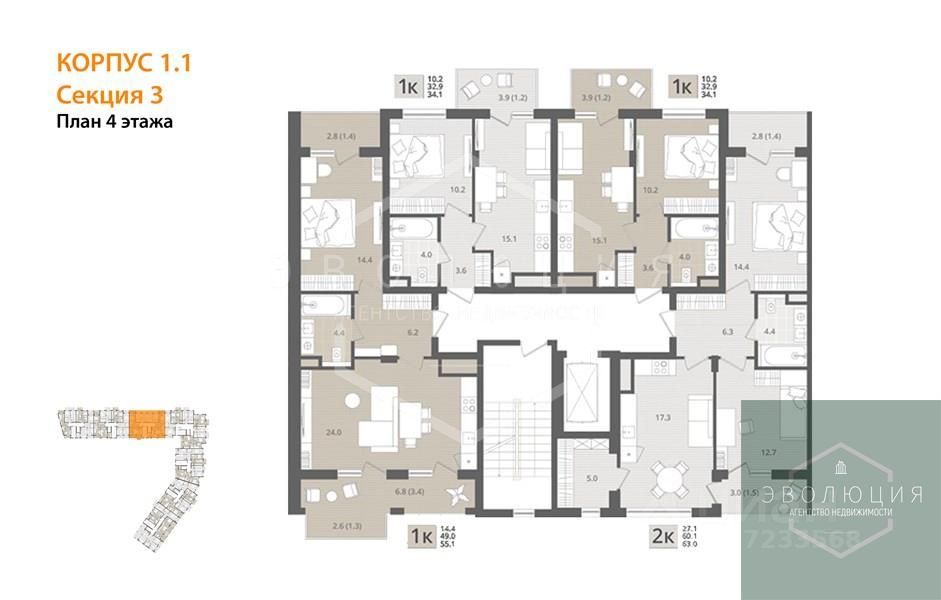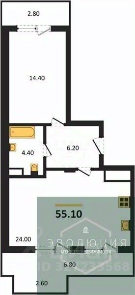 Квартира: 1 к 55,10 кв.м., 4 этаж в комплексе МОре, 1 очередь, корп.1.1, сдача: 4кв. , этажей: 7, адрес Пионерский г., Рабочая ул., , Застройщик: СК Меркурий.