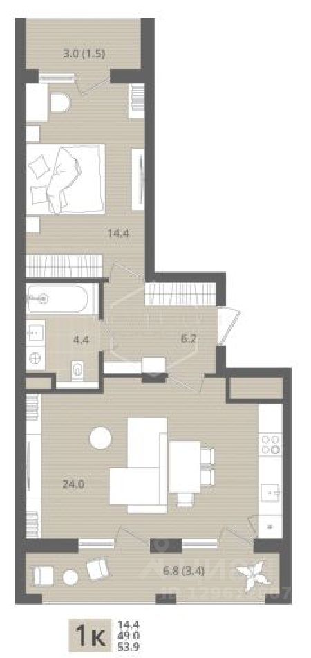 53,9 м²