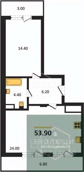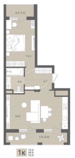Квартира: 1 к 53,90 кв.м., 3 этаж в комплексе МОре, 1 очередь, корп.1.1, сдача: 4кв. , этажей: 7, адрес Пионерский г., Рабочая ул., , Застройщик: СК Меркурий.