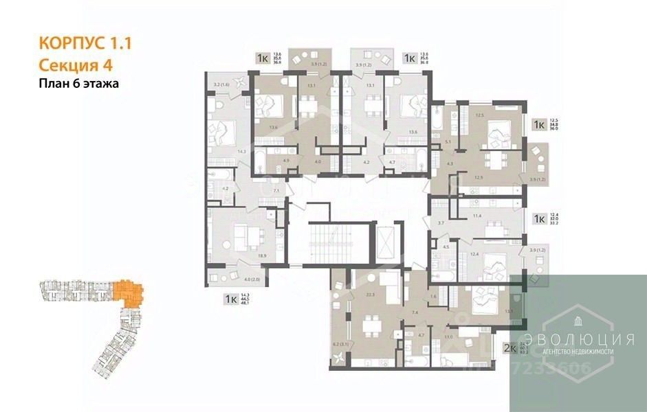 Квартира: 1 к 36,00 кв.м., 6 этаж в комплексе МОре, 1 очередь, корп.1.1, сдача: 4кв. , этажей: 7, адрес Пионерский г., Рабочая ул., , Застройщик: СК Меркурий.
