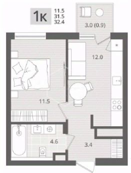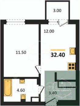 Квартира: 1 к 32,40 кв.м., 3 этаж в комплексе МОре, 1 очередь, корп.1.1, сдача: 4кв. , этажей: 7, адрес Пионерский г., Рабочая ул., , Застройщик: СК Меркурий.