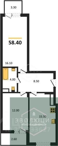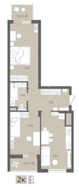Квартира: 2 к 58,40 кв.м., 4 этаж в комплексе МОре, 1 очередь, корп.1.1, сдача: 4кв. , этажей: 7, адрес Пионерский г., Рабочая ул., , Застройщик: СК Меркурий.