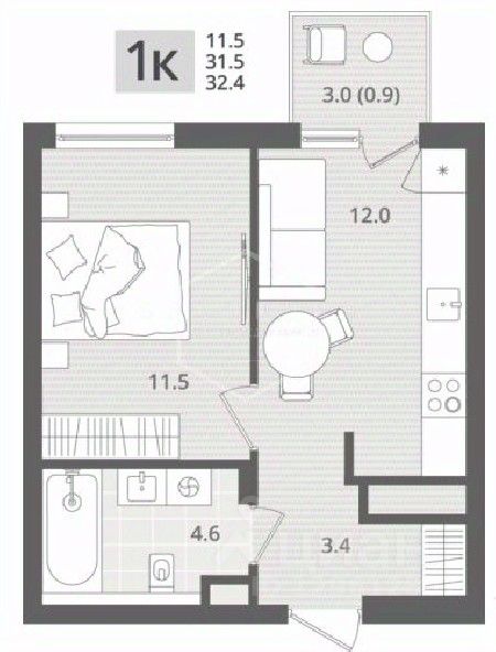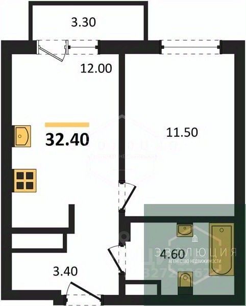 Квартира: 1 к 32,40 кв.м., 5 этаж в комплексе МОре, 1 очередь, корп.1.1, сдача: 4кв. , этажей: 7, адрес Пионерский г., Рабочая ул., , Застройщик: СК Меркурий.