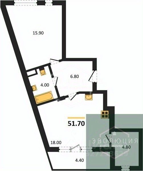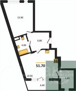Квартира: 1 к 51,70 кв.м., 6 этаж в комплексе МОре, 1 очередь, корп.1.1, сдача: 4кв. , этажей: 7, адрес Пионерский г., Рабочая ул., , Застройщик: СК Меркурий.