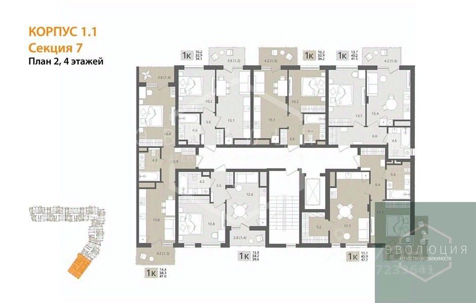 Квартира: 1 к 41,00 кв.м., 4 этаж в комплексе МОре, 1 очередь, корп.1.1, сдача: 4кв. , этажей: 7, адрес Пионерский г., Рабочая ул., , Застройщик: СК Меркурий.