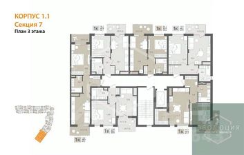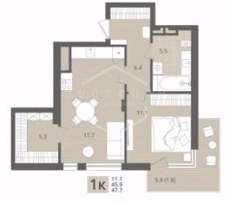 Квартира: 1 к 47,70 кв.м., 3 этаж в комплексе МОре, 1 очередь, корп.1.1, сдача: 4кв. , этажей: 7, адрес Пионерский г., Рабочая ул., , Застройщик: СК Меркурий.
