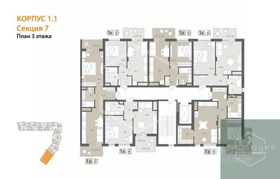 Квартира: 1 к 34,10 кв.м., 3 этаж в комплексе МОре, 1 очередь, корп.1.1, сдача: 4кв. , этажей: 7, адрес Пионерский г., Рабочая ул., , Застройщик: СК Меркурий.