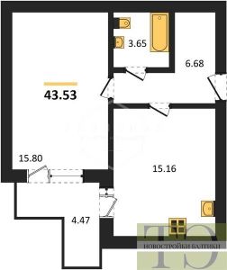 Квартира: 1 к 43,53 кв.м., 4 этаж в комплексе 11 мая, 3 очередь, корп.3.1, сдача: 2кв. , этажей: 9, адрес Калининград г., Героя России Катериничева ул., д. 7, Застройщик: Модуль-Стройград.