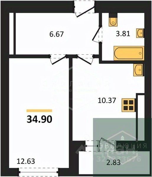 34,9 м²
