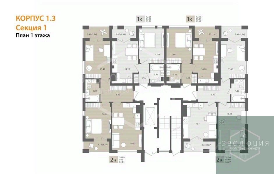 Квартира: 2 к 65,27 кв.м., 1 этаж в комплексе МОре, 1 очередь, корп.1.3, сдача: 3кв. , этажей: 7, адрес Пионерский г., Рабочая ул., , Застройщик: СК Меркурий.