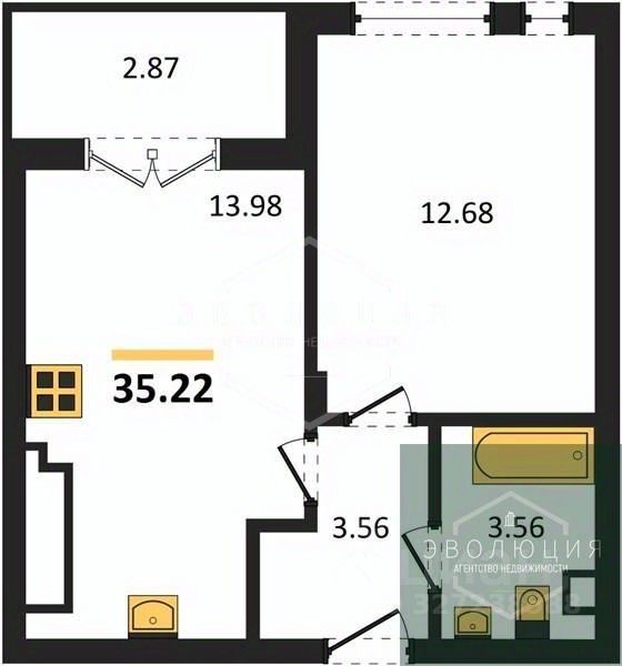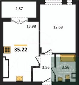 Квартира: 1 к 35,22 кв.м., 2 этаж в комплексе МОре, 1 очередь, корп.1.3, сдача: 3кв. , этажей: 7, адрес Пионерский г., Рабочая ул., , Застройщик: СК Меркурий.