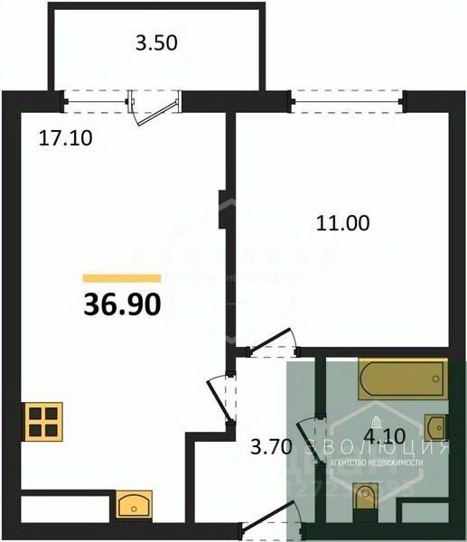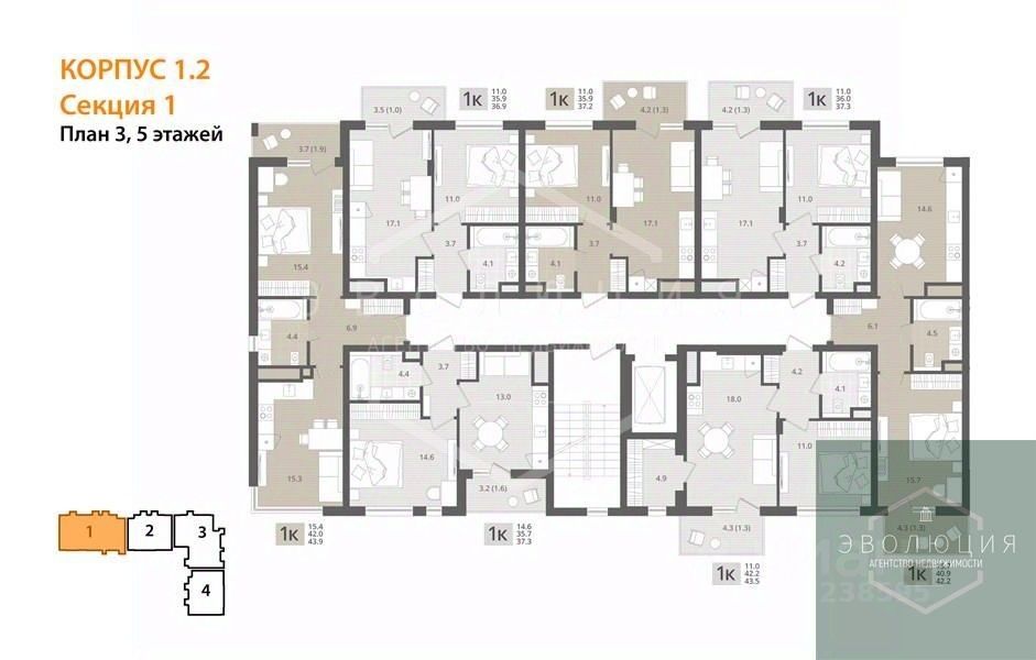 Квартира: 1 к 36,90 кв.м., 5 этаж в комплексе МОре, 1 очередь, корп.1.2, сдача: 4кв. , этажей: 7, адрес Пионерский г., Рабочая ул., , Застройщик: СК Меркурий.