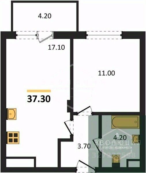 Квартира: 1 к 37,30 кв.м., 4 этаж в комплексе МОре, 1 очередь, корп.1.2, сдача: 4кв. , этажей: 7, адрес Пионерский г., Рабочая ул., , Застройщик: СК Меркурий.